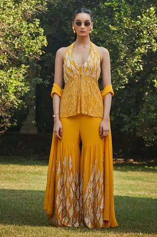 Green mulmul cowl pleated layer kurta