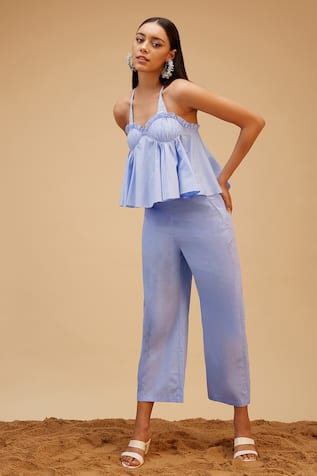 Cotton Playful Stripe Print Crop Top & Pant Set