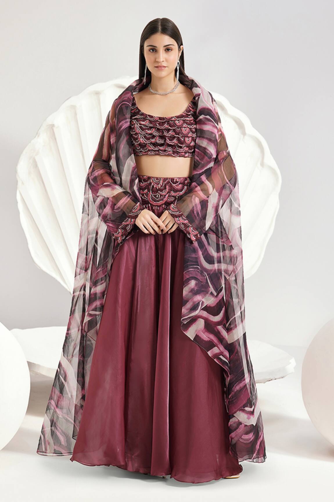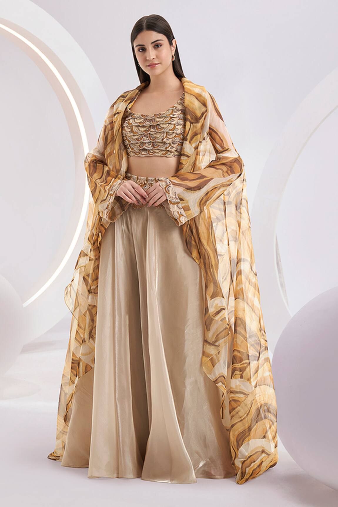 Ziva Mirror Embellished Cape Shirt & Pant Set