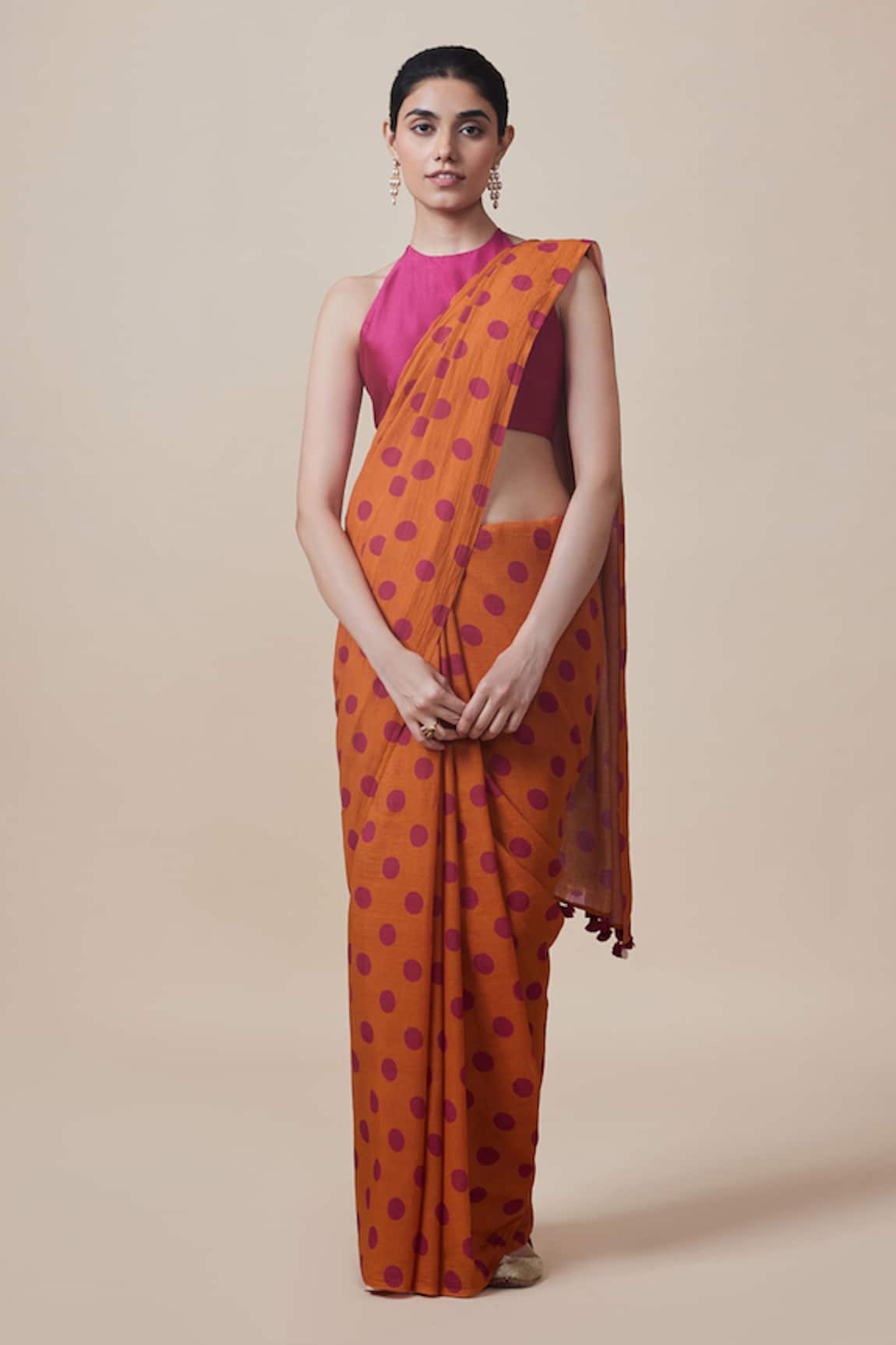 Polka Dots Handloom Cotton Saree With Running Blouse