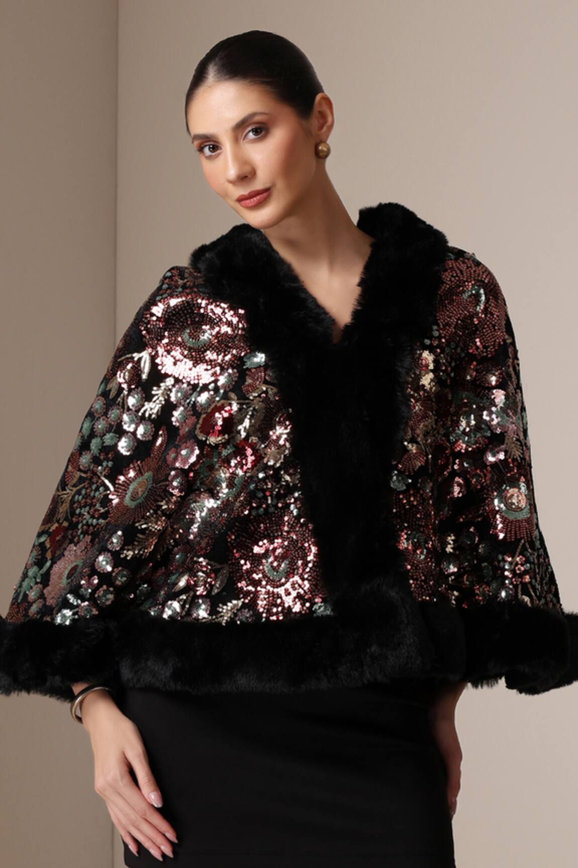 Jazz Foliage Bloom Pattern Fine Wool Silk Cape