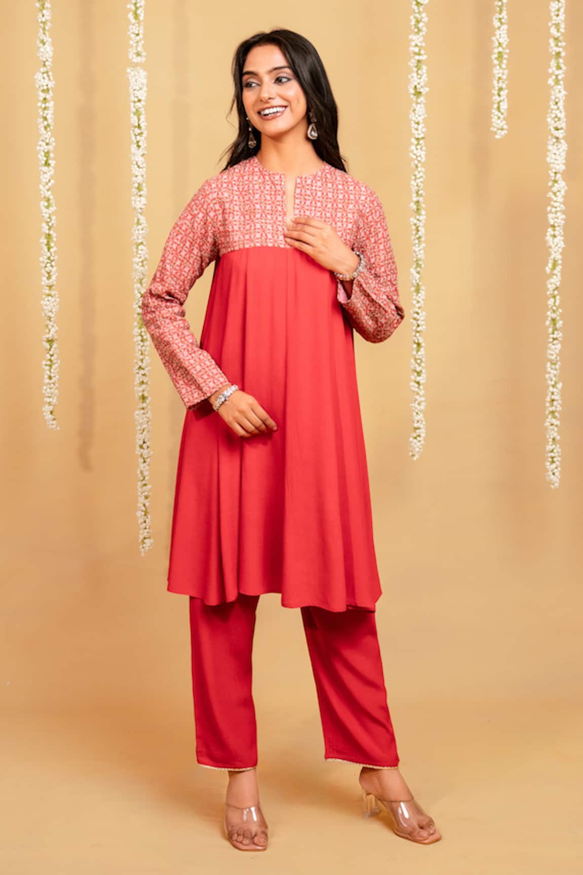 Crimson Glow Flared Kurta & Pant Co-ord Set