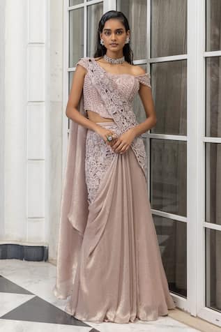 Yellow Hand-Painted Organza Cape & Skirt Set