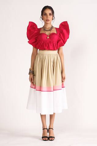 Pink Chikankari Embroidered Silk Chiffon Skirt