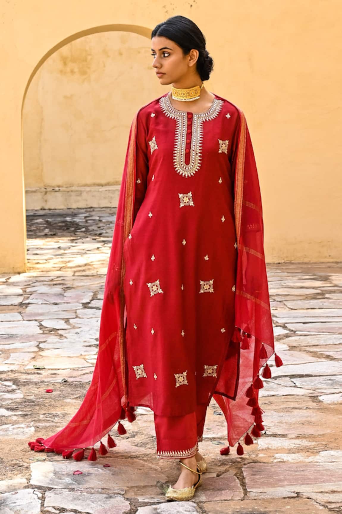 Scarlet Luxe Chanderi Gota Patti Red Kurta Set