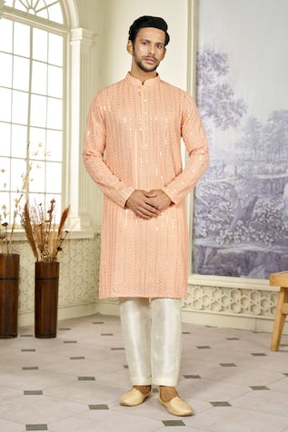 Vine Thread & Mirror Embroidered Kurta With Pant