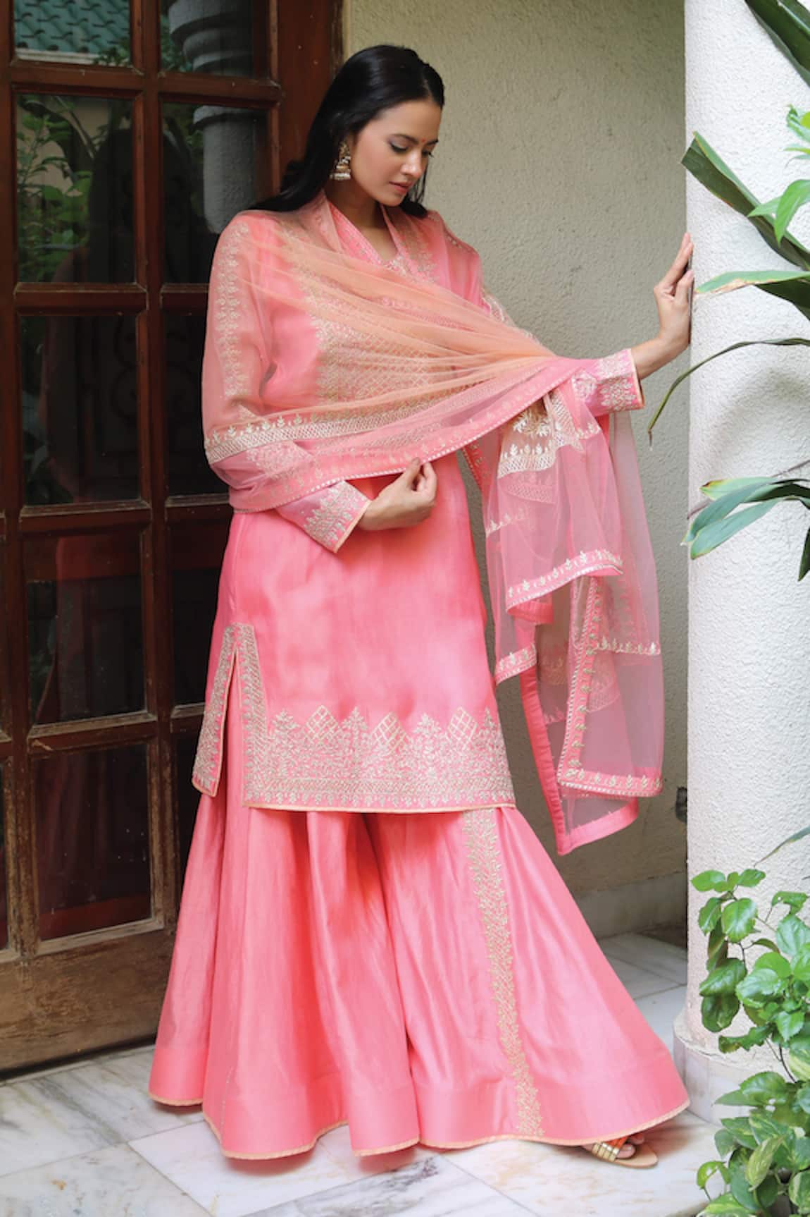 Chanderi Mirror Embroidered Jacket Kurta Set