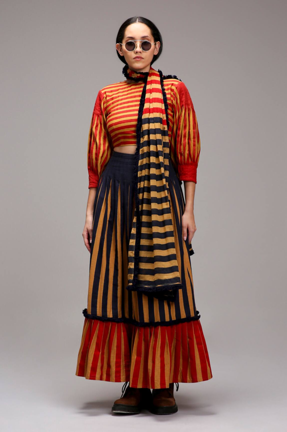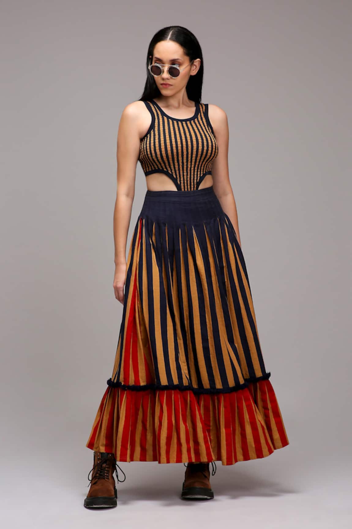 Striped Cut-Out Bodysuit & Pleated Skirt Set