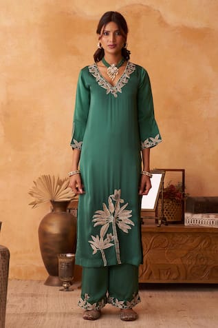 Rasika Palm Tree Embroidered Kurta & Brocade Pant Set