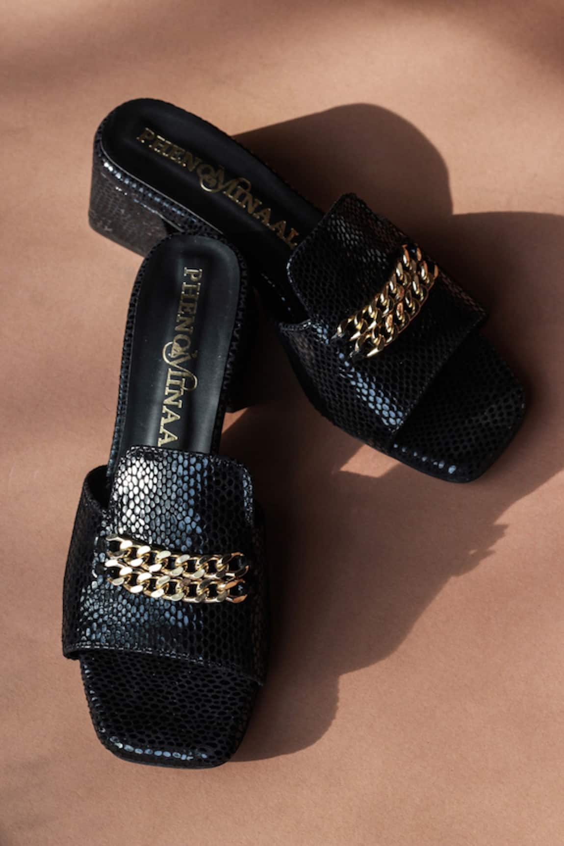 PHENOMINAAL Dull Orange Double Chain Block Heels