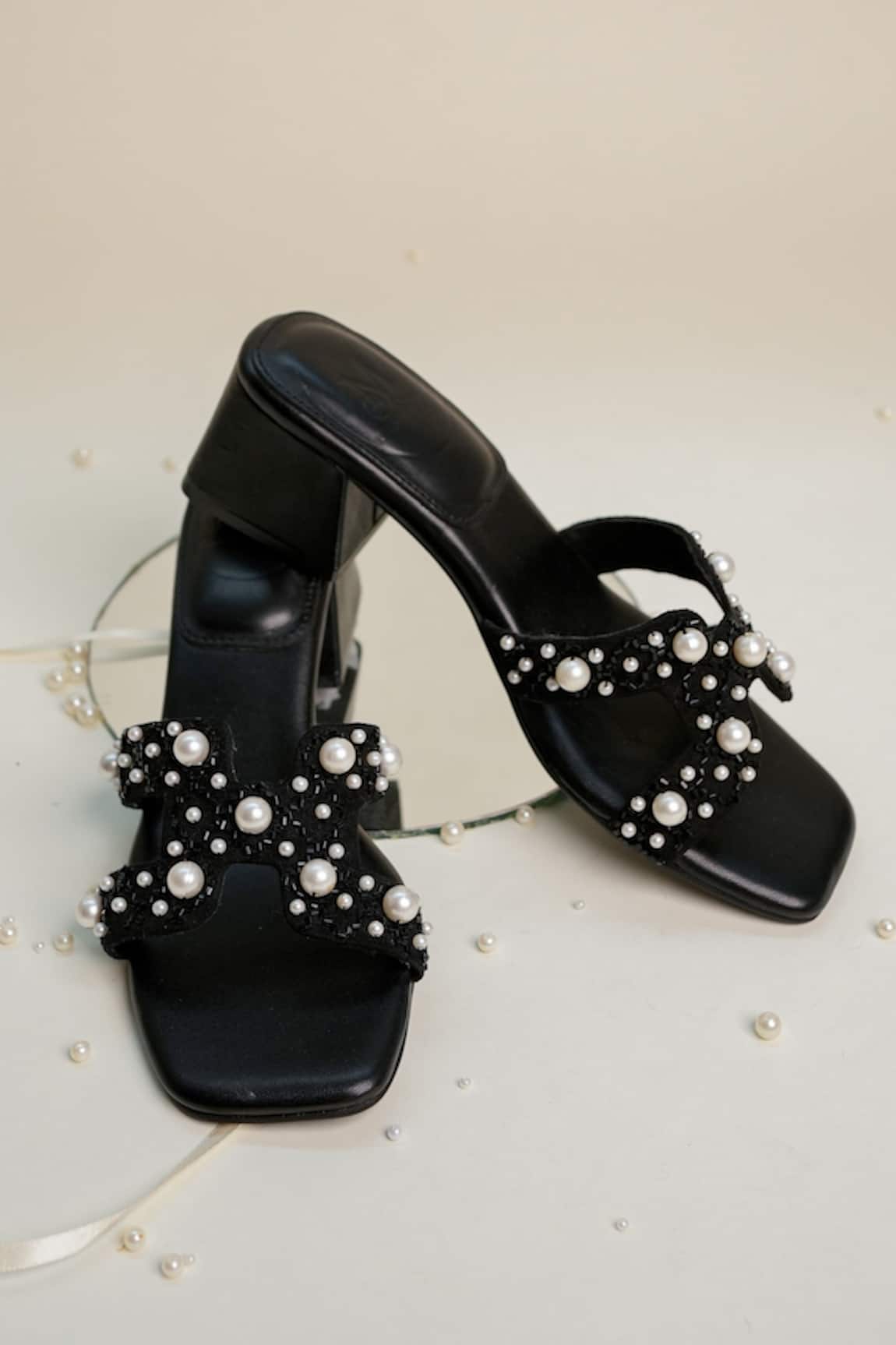 PHENOMINAAL Black Hand Embroidered Wedge Heels