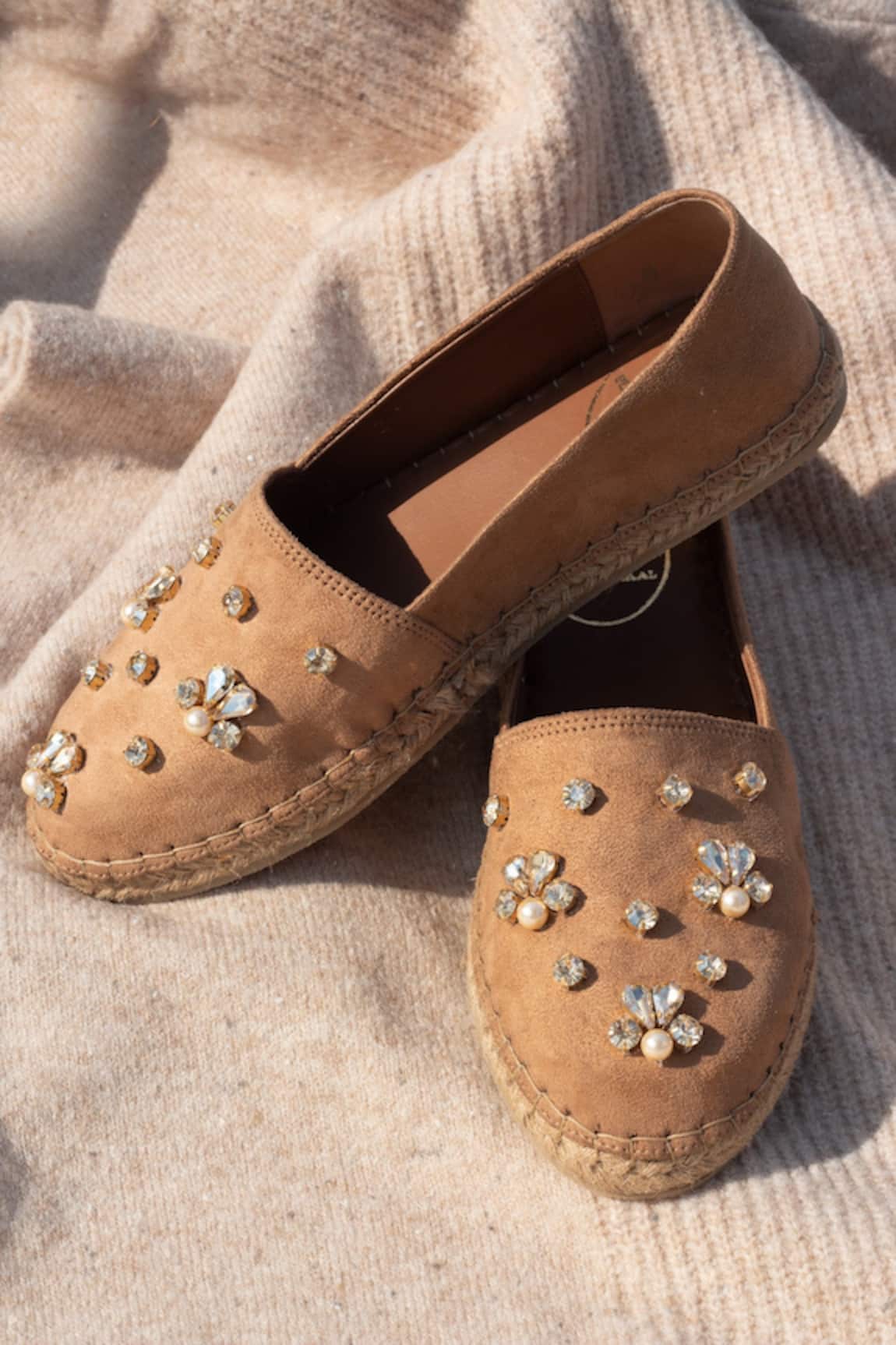 PHENOMINAAL Floral Embellished Beige Espadrilles