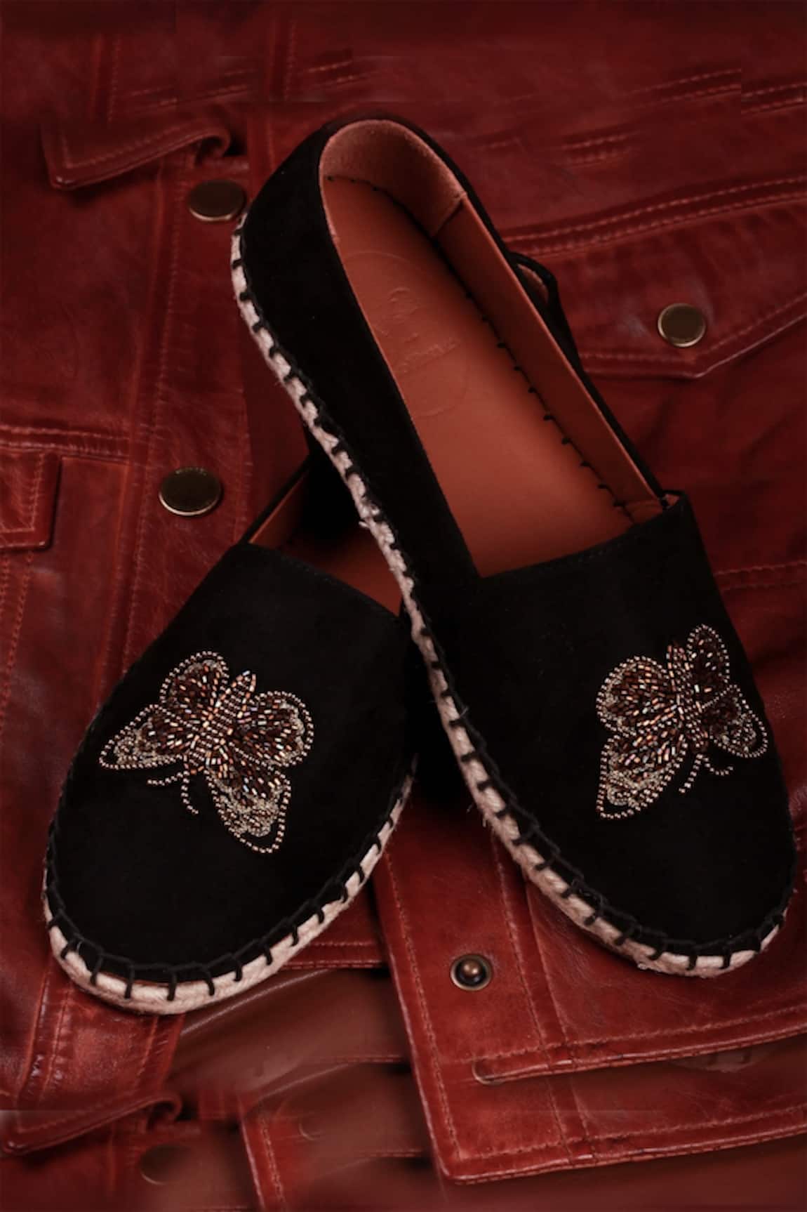 PHENOMINAAL Butterfly Embroidered Black Espadrilles
