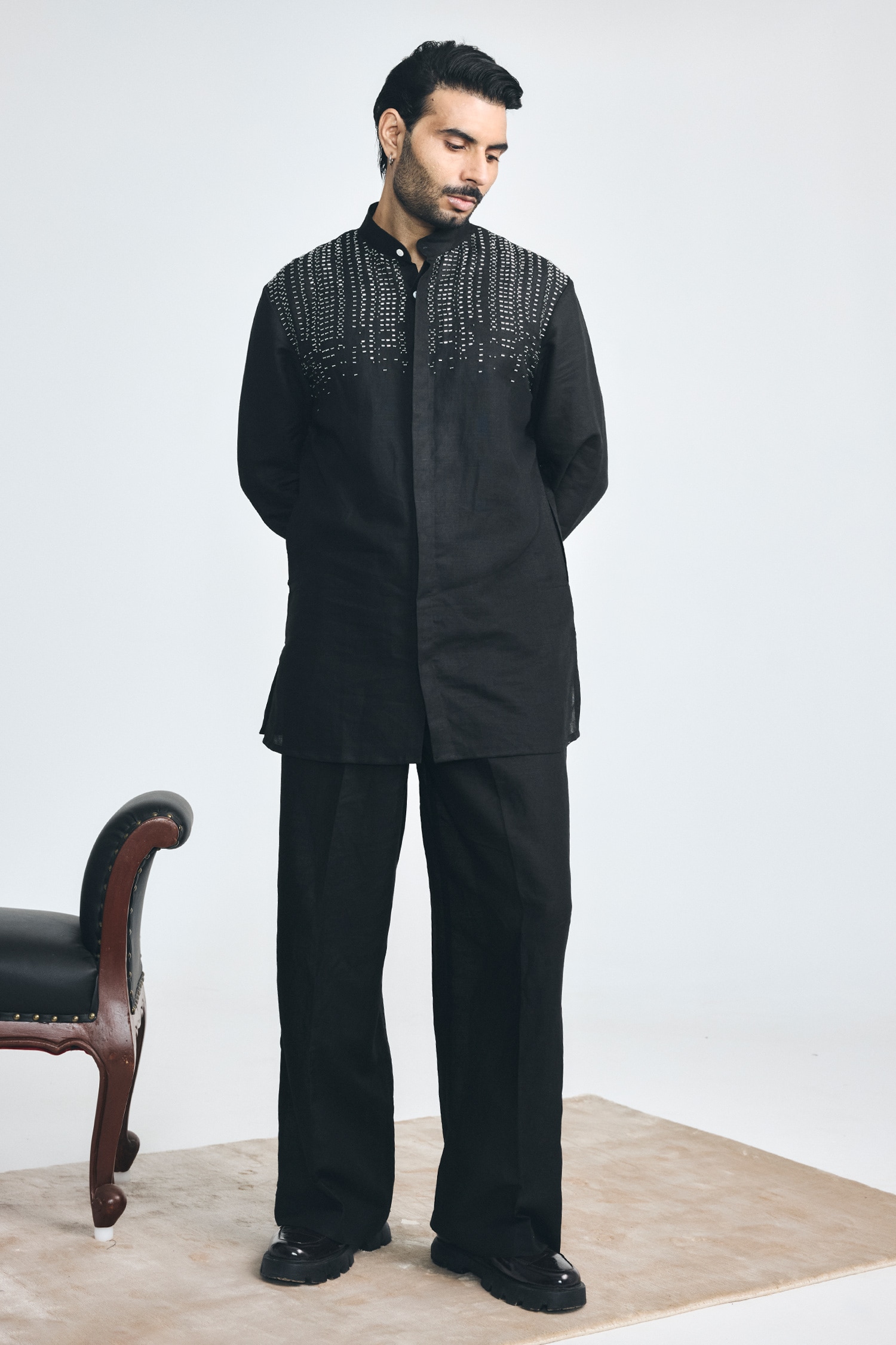 Brotherhood Cutdana Hand Embroidered Short Kurta