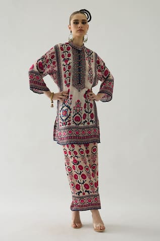 Banera Floral Geometric Print Kurta With Pant