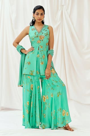Hand Embroidered Flared Top Sharara Set