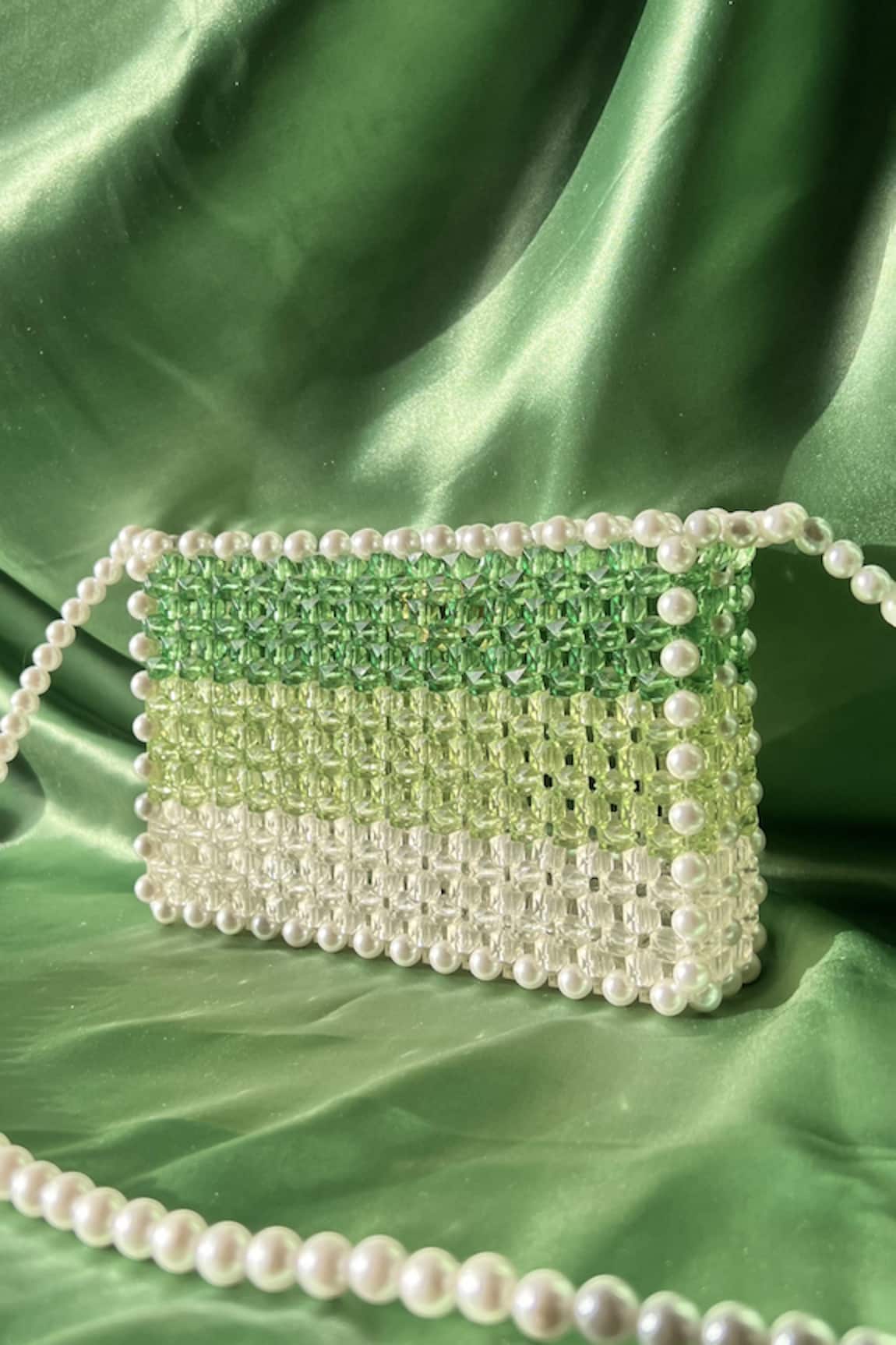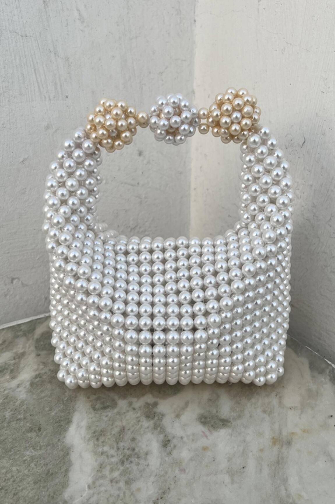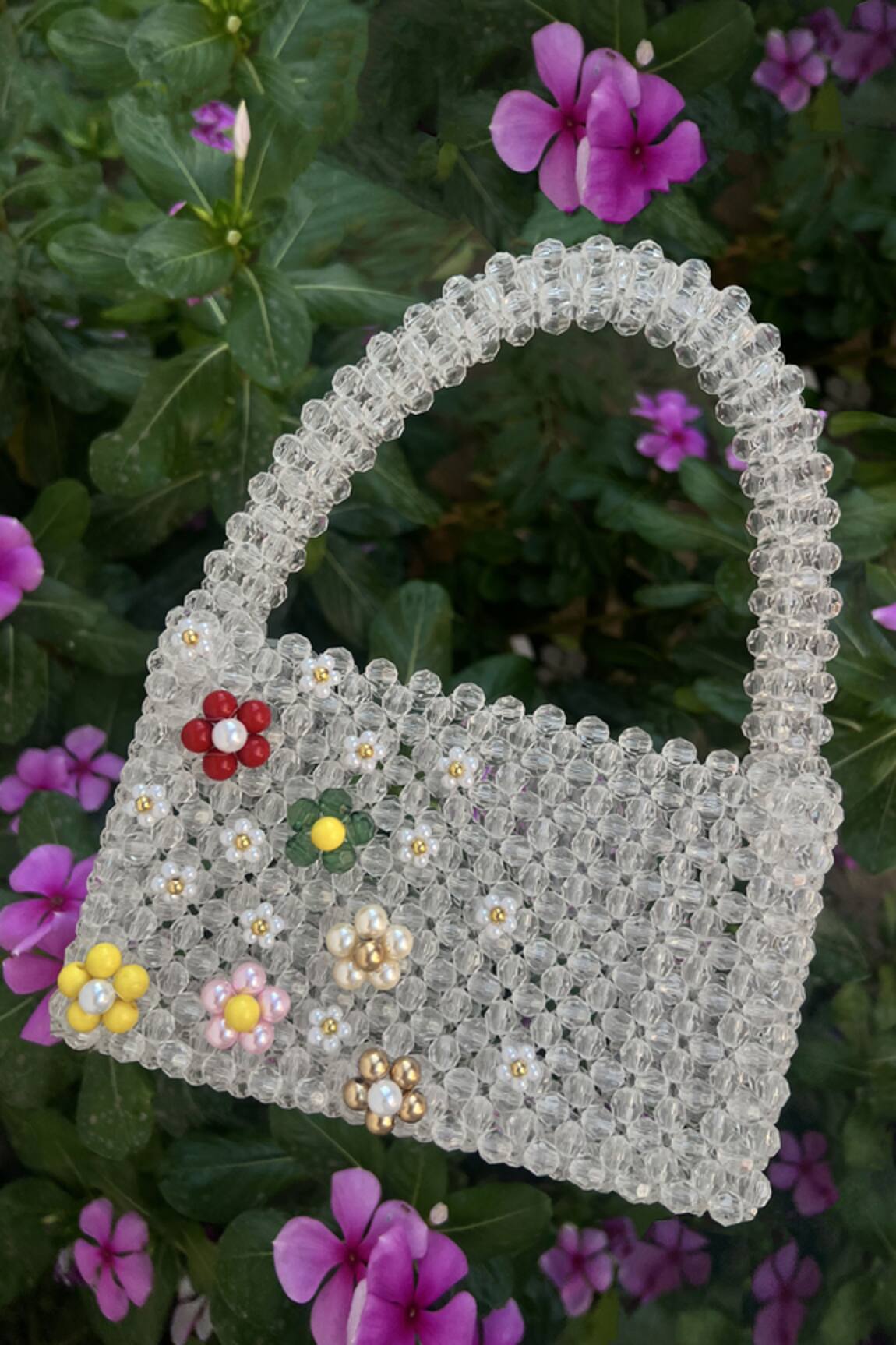 Lexi White Beaded Handwoven Acrylic Crystals Clutch