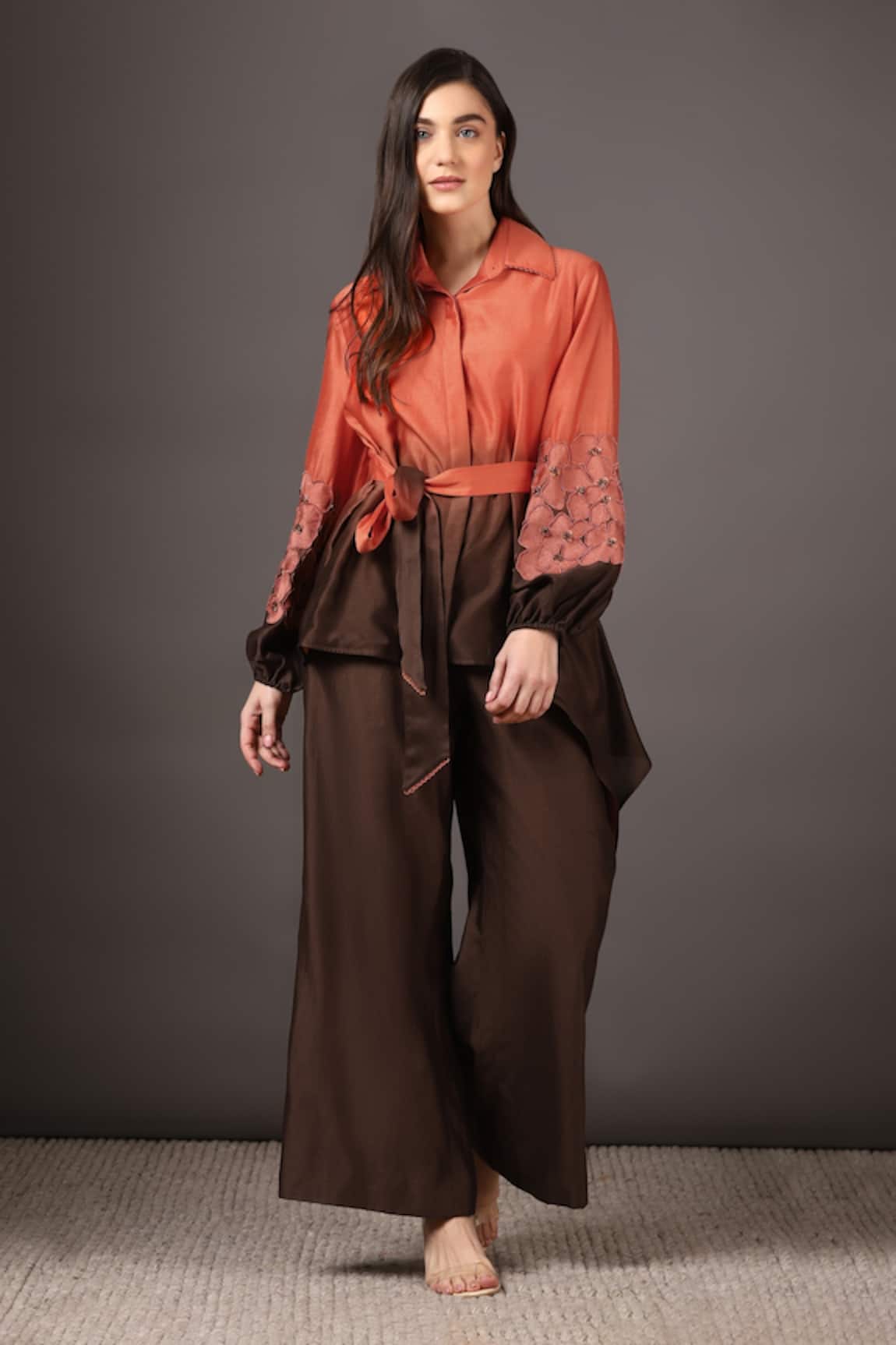Chanderi Silk Ombre Shirt & Bell Bottom Pant Set