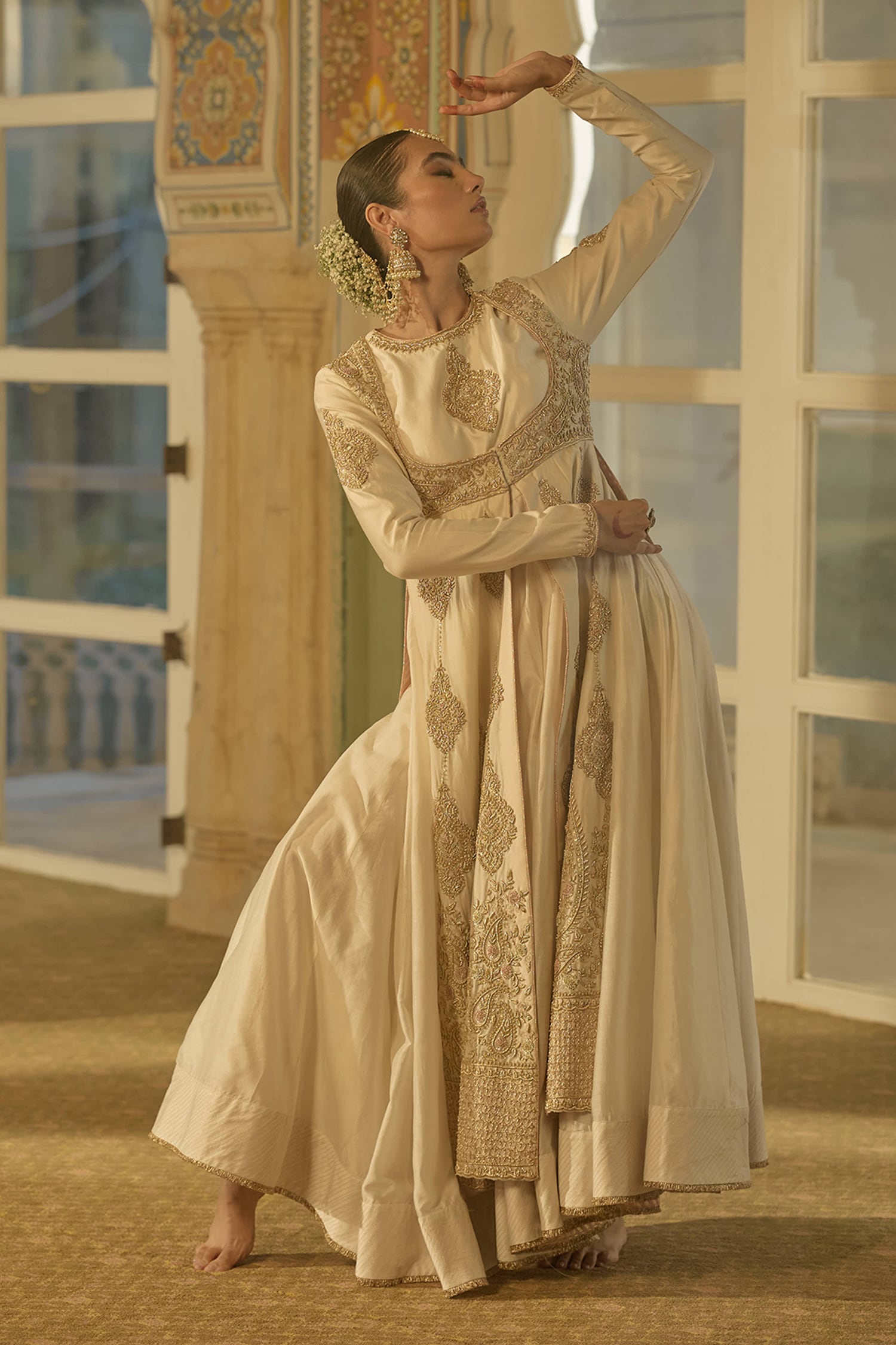 Mehrish Yoke Embroidered Choga & Salwar Set