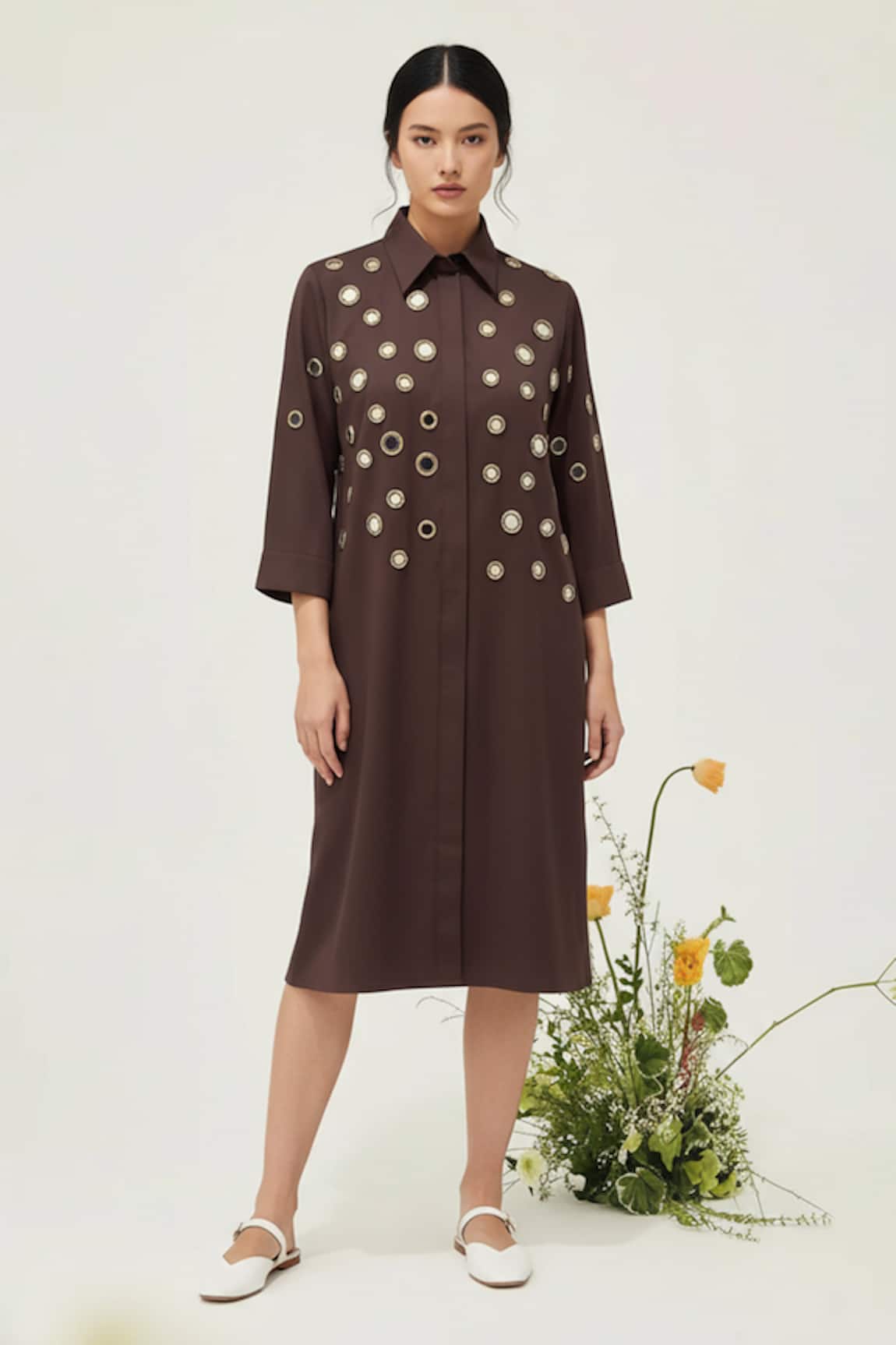 Eyelet Embellished Midi Dress