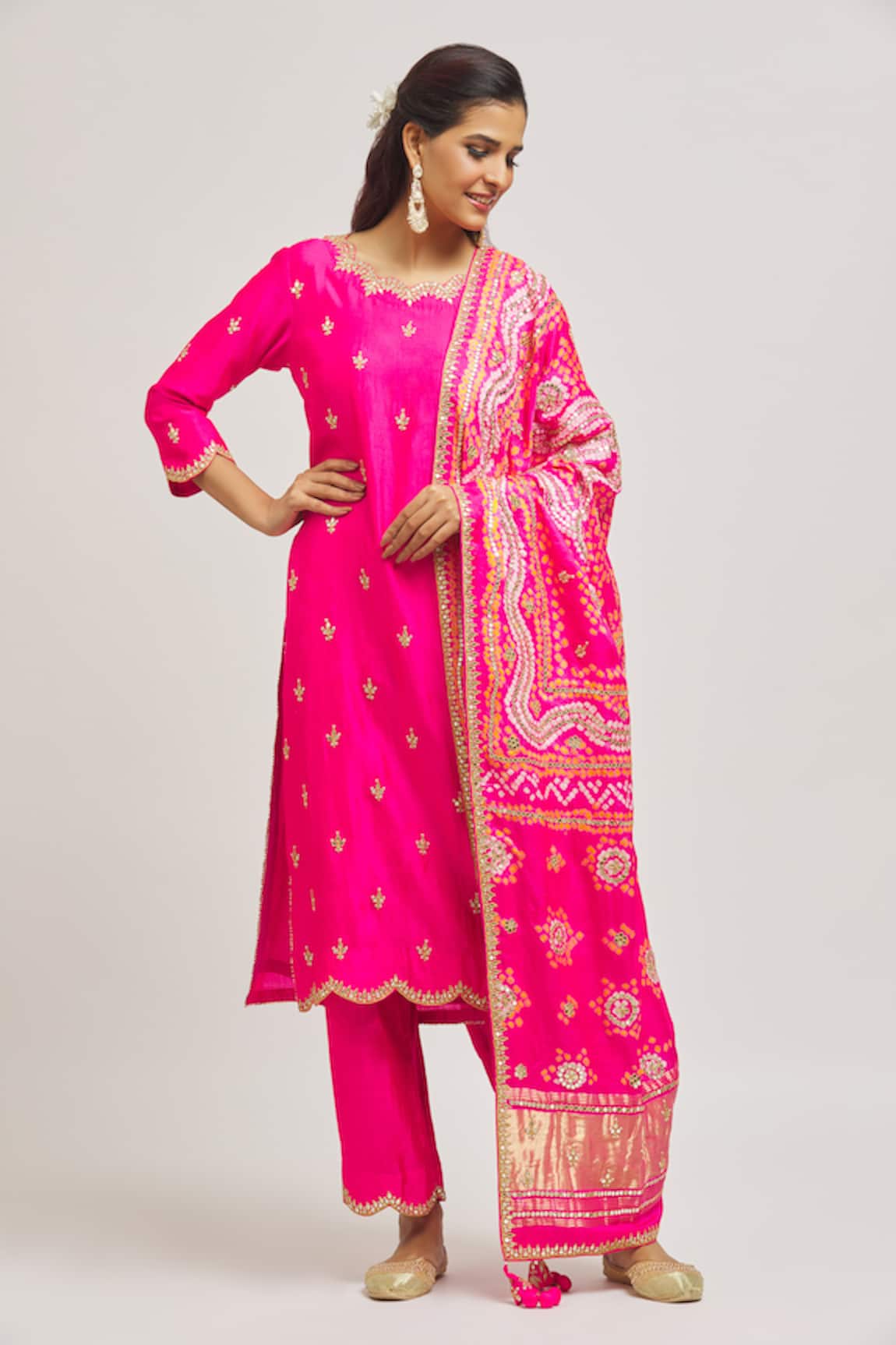 Banarasi Chanderi Zardosi Embroidered Kurta & Pant Set