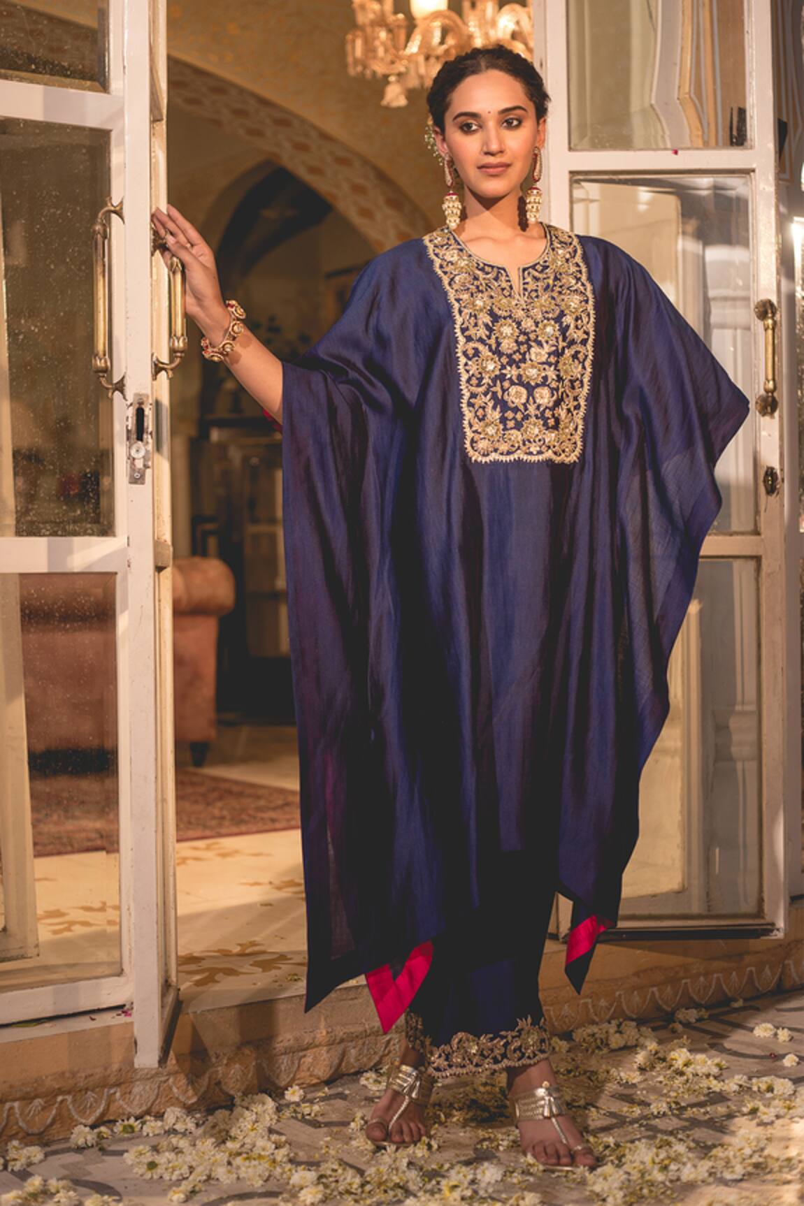 Showcasing Surbhi Shah’s latest Kurta Sets, Lehengas, Kaftans and more.