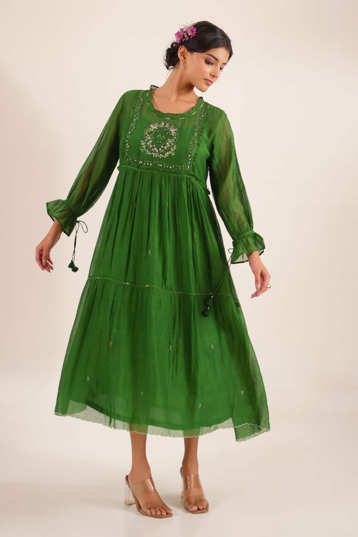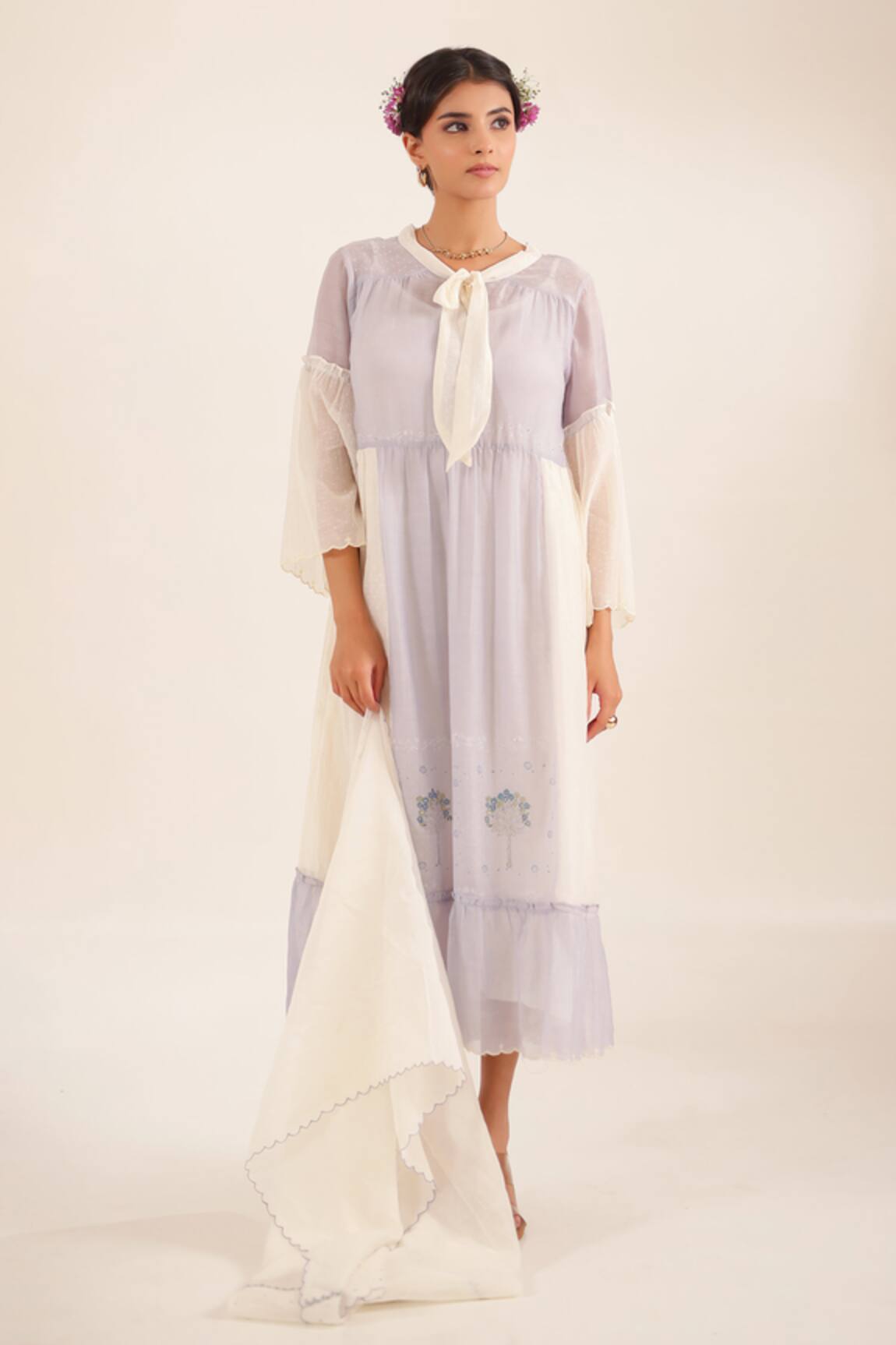 Victorian Art Embroidered Tiered Kurta With Scarf