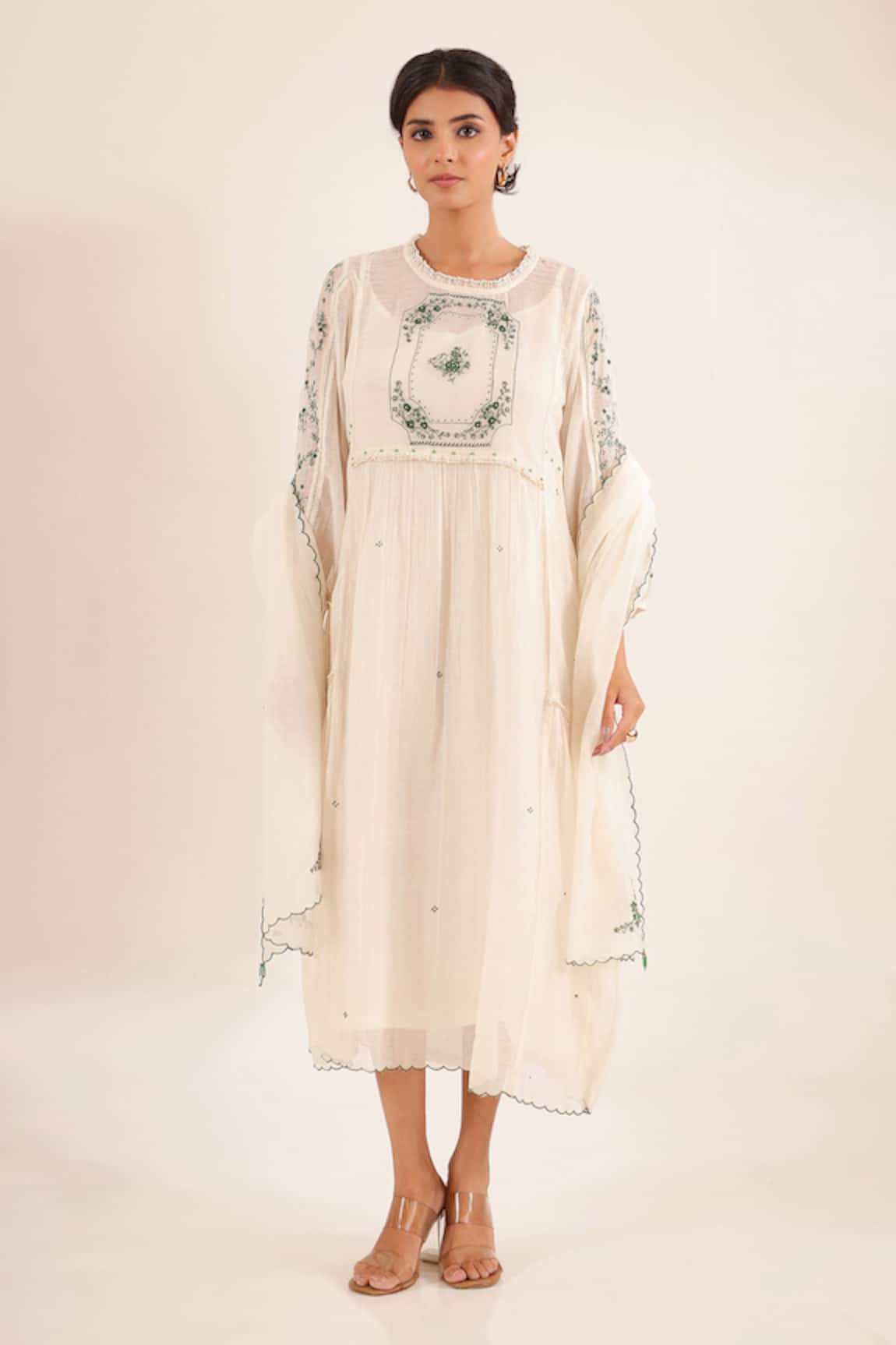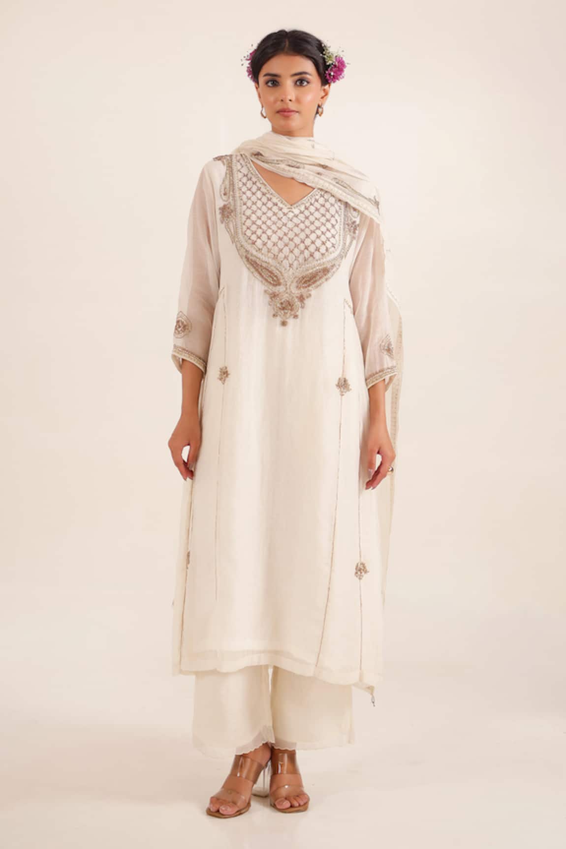 Elizabeth Chanderi Embroidered Kurta With Scarf