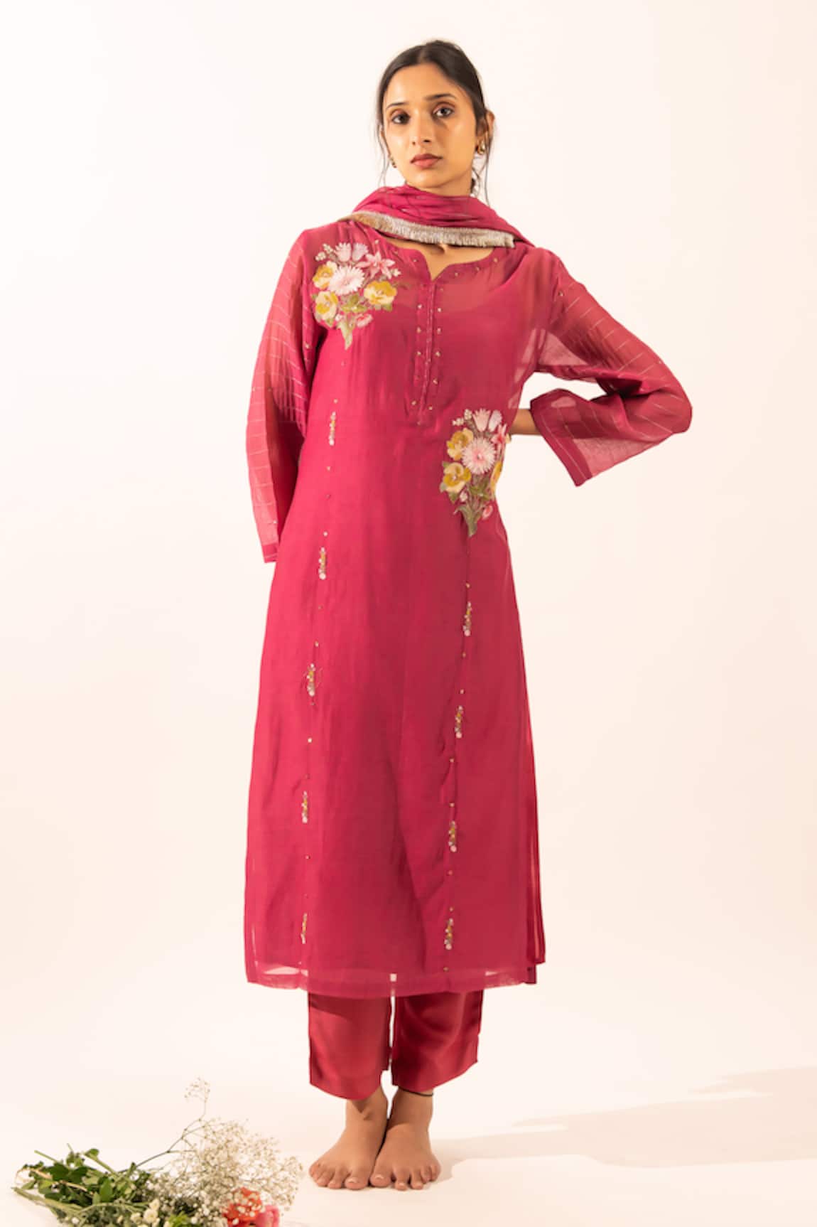 Flower Embroidered Kurta & Pant Set
