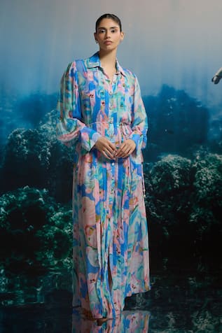 Ocean Bloom Shirt Dress