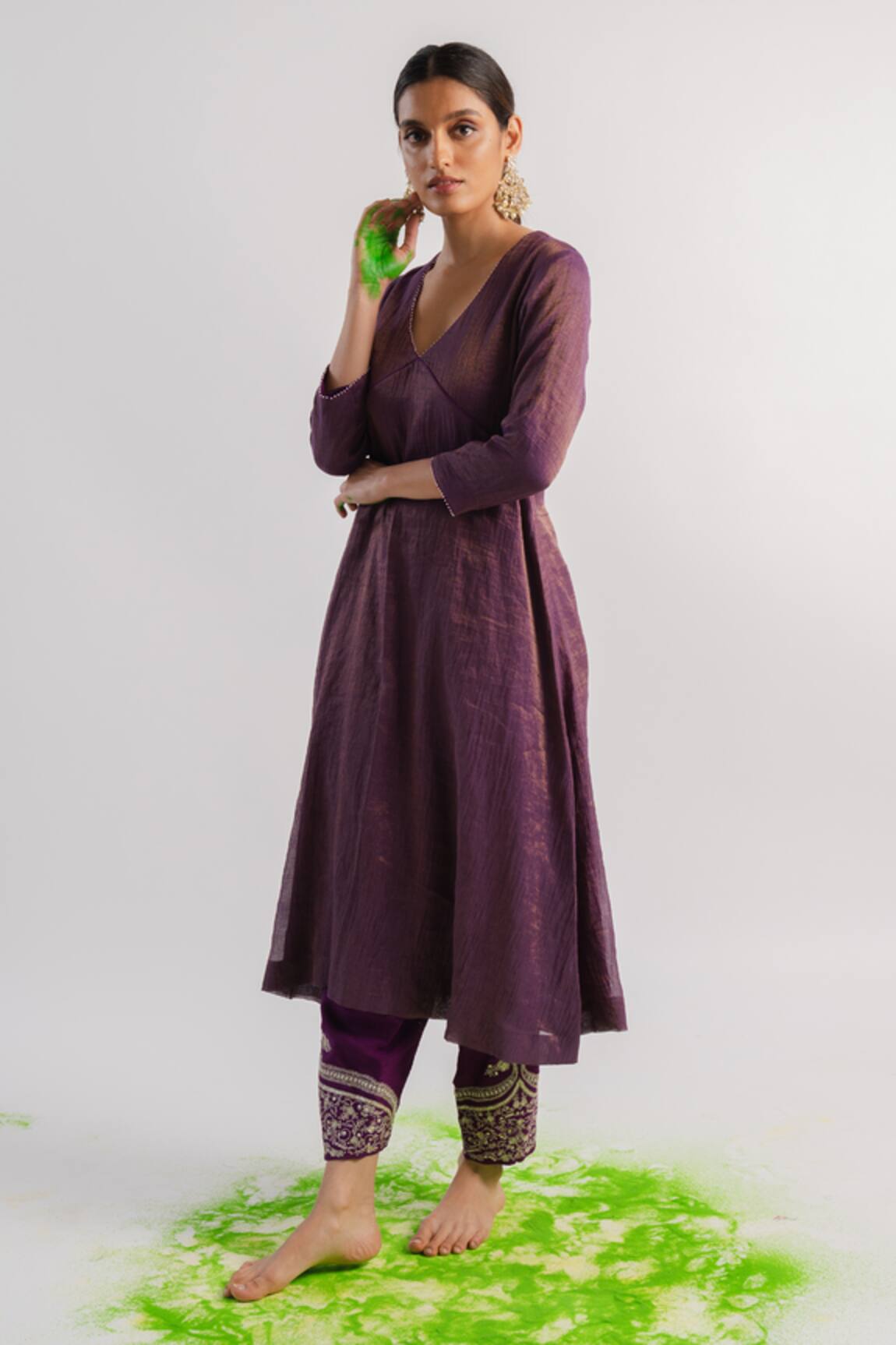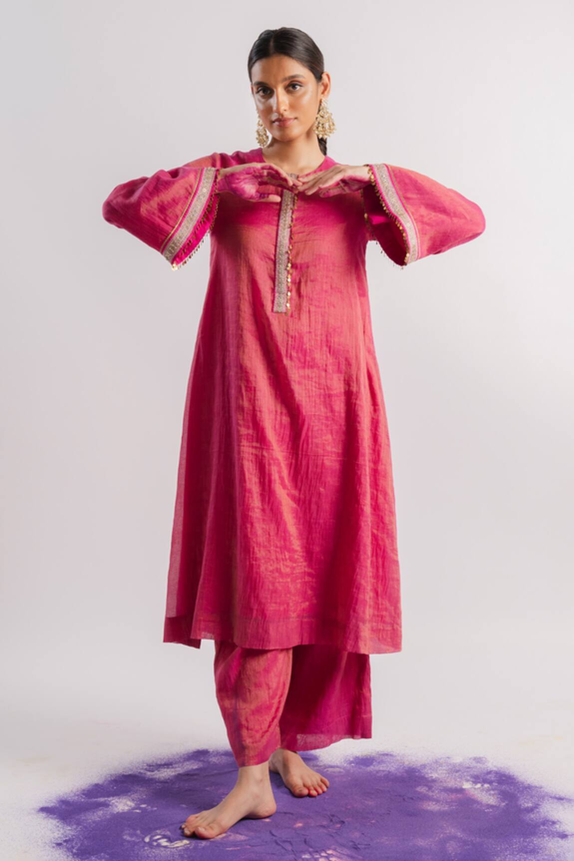 Chanderi A-Line Kurta & Pant Set
