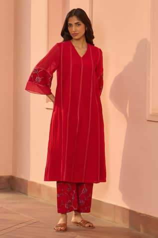 Applique Embroidered Kurta Pant Set