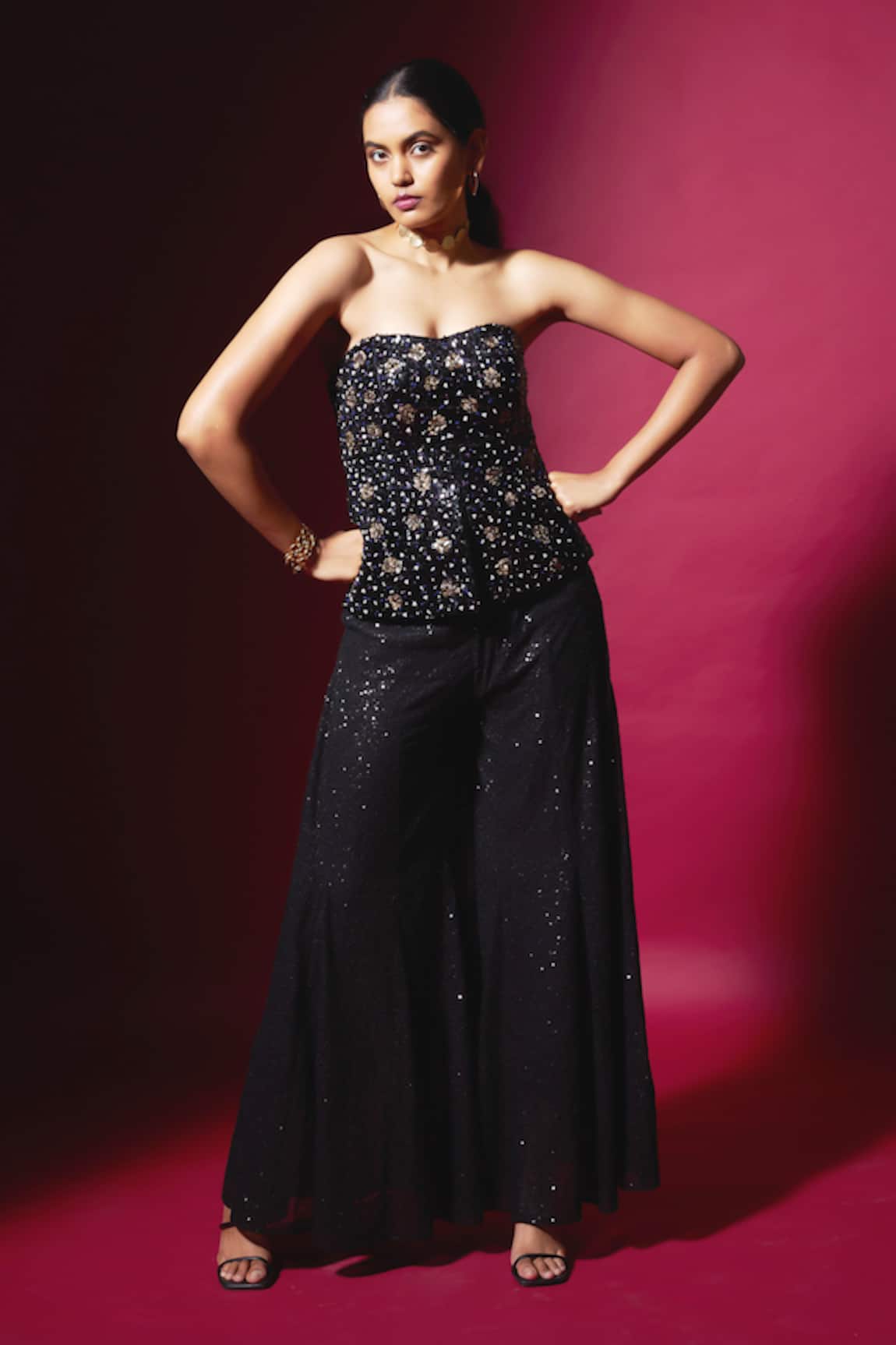 Sequin Work Bustier With Panelled Pant
