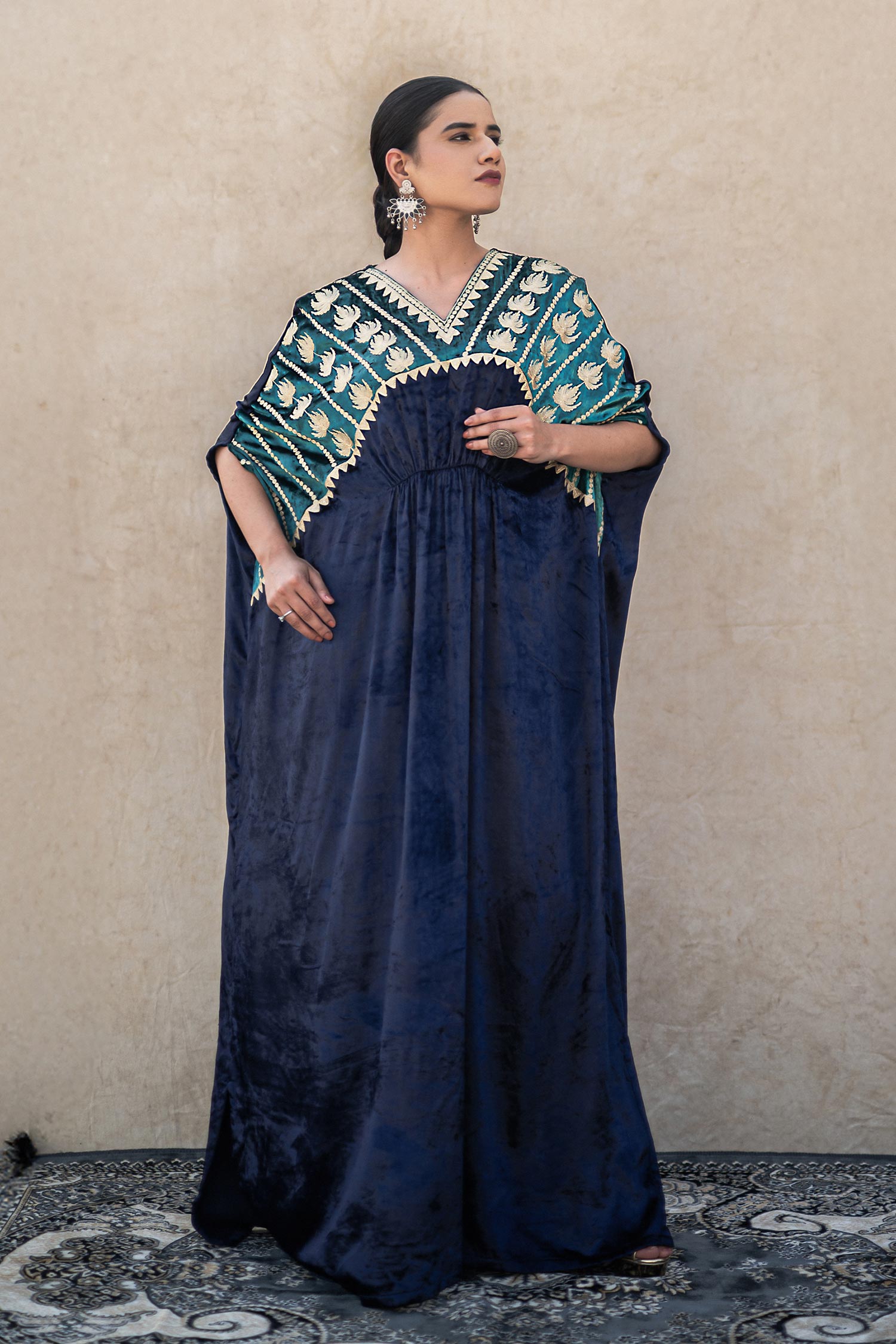 Silk Turtle Neck Dress With Velvet Embroidered Jacket