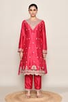 Pink Chinon, Organza Sequins, Embroidery V-neck Kurta Palazzo Set