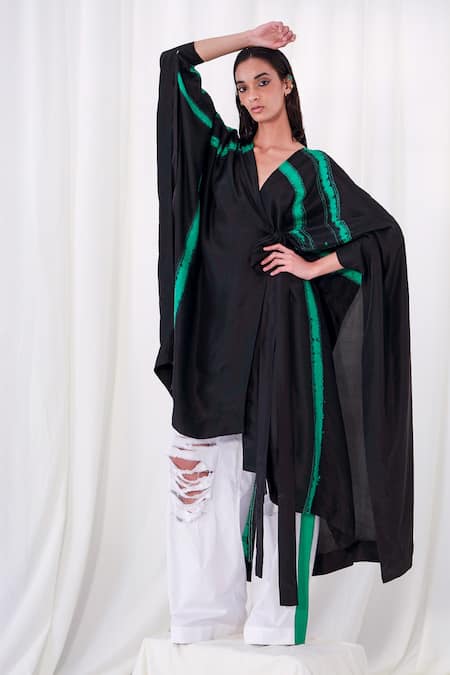 Black Cotton Tassels V-neck Shibori Pattern Angrakha And Trouser Set