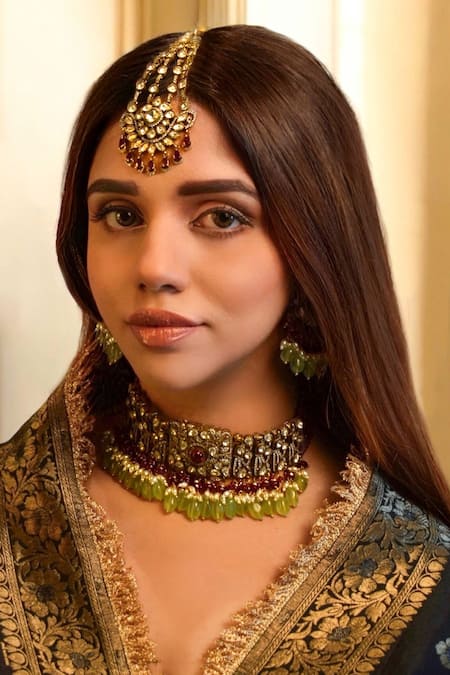 Gold Plated Stones, Pearls Noor Gulzar Ruby Necklace Set