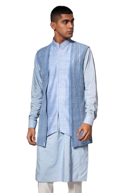 Blue Raw , Cotton Layered Bundi And Kurta Set