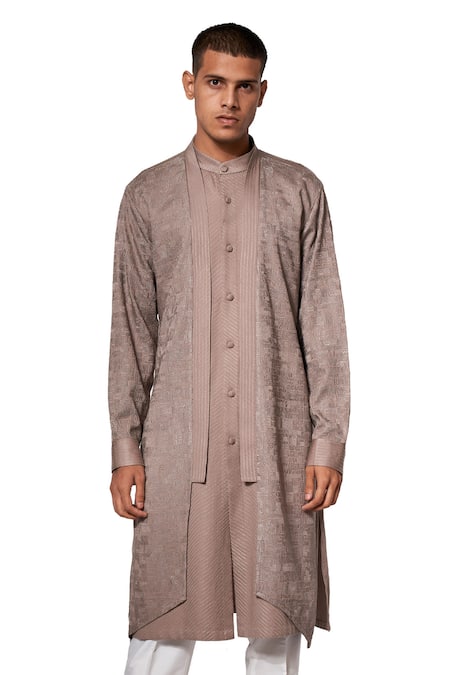 Grey Cotton Satin Layered Kurta Set