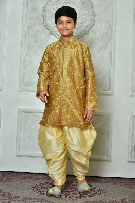 Brown Silk Embroidery Paisley Thread Work Kurta And Patiala Pant Set