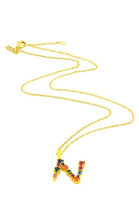 Multi Color Alphabet N Studded Gemstone Pendant Necklace