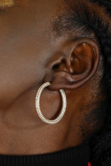 Gold Plated Crystals Cubic Zirconia Studded Glitzy Hoops