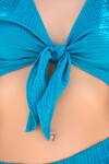 Blue Cotton Embroidery V-neck Cordon Schiffli Skirt And Tie Top Set
