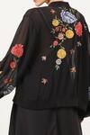 Black Viscose, Georgette Embroidery Open Neck Fierce Bomber Jacket