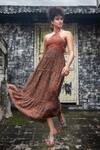 Multi Color Cotton Sequins Halter Neck Flamingo Lily Backless Maxi Dress