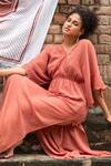 Rust Cotton V-neck Rose Balsam Long Kaftan