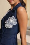 Blue Denim Embroidery, Applique Blazer Skirt Set