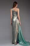 Blue Silk Metallic Thread, Sequins One Shoulder Draped Skirt With Top