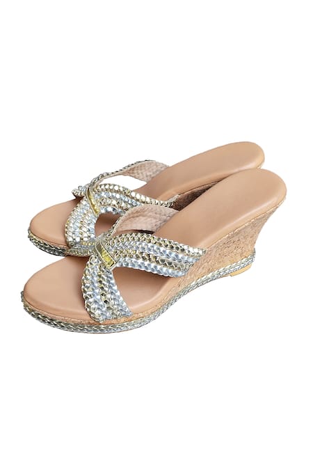 Beige Embroidered Braided Wedges