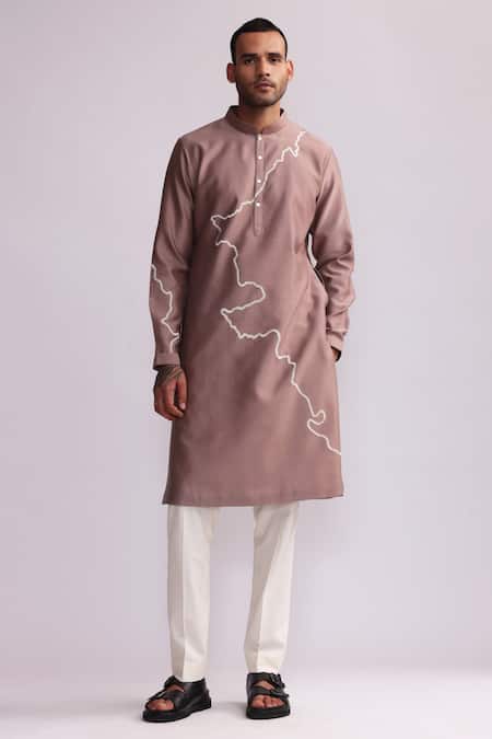 Pink Chanderi Embroidery Contour Threadwork Kurta With Pant